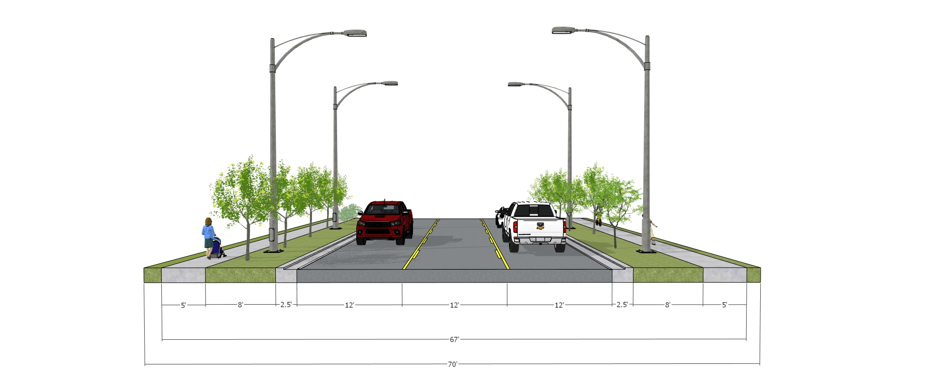 Major Collectors have lane widths that range from 10'-12' based on speed and volume. For state highways, there should be a 6' paved shoulder in addition to the curb and gutter; and clear zone minimums must be met based on speeds. Where needed, excess right-of-way will be needed for bicycle and pedestrian facilities or turn lanes. The recommended posted speed limit ranges from 25-40 mph, and the maximum daily capacity is 9,100-11,600 vehicles.